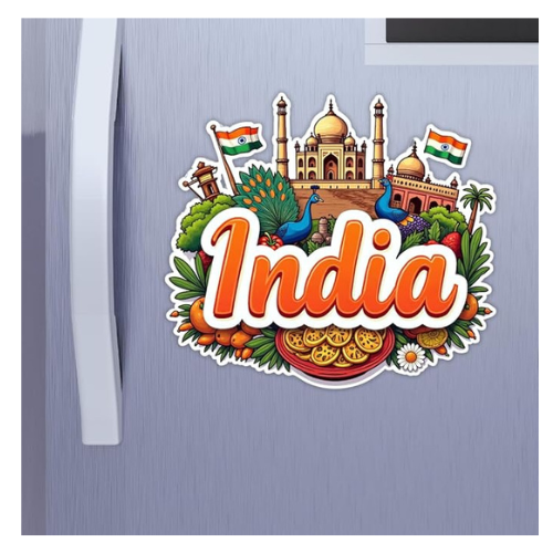 - Iconic Indian Design: Featuring recognizable symbols such as the Taj Mahal, traditional Indian motifs, elephants, and more, this magnet is a beautiful representation of India’s grandeur and diversity. It captures the spirit of the country, from its magnificent landmarks to its vibrant festivals.
